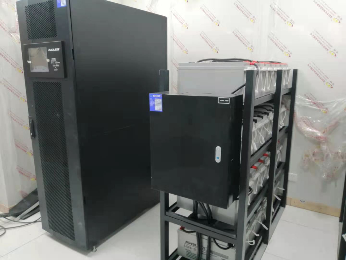 本次行政服務(wù)中心采用模塊化UPS電源GLS-120KVA和高頻UPS主機GLA-30KVA各1臺??偟膩碚f,UPS就是為了解決不間斷供電而設(shè)置的,UPS的三大基本功能是:穩(wěn)壓,濾波,不間斷。UPS具有很好的穩(wěn)壓功能。高檔的UPS電源,會將市電穩(wěn)壓后供應(yīng)給負載使用,相當于一臺交流市電穩(wěn)壓器。當市電中斷時,UPS立即將機內(nèi)電池的電能,通過逆變器轉(zhuǎn)換成穩(wěn)定的220V向負載繼續(xù)供電。所以具有穩(wěn)壓功能。UPS電源專用濾波器解決UPS電源諧波問題。濾除UPS電源產(chǎn)生的諧波,諧波電流畸變率降到5%~10%。UPS電源專用濾波器提高系統(tǒng)可靠性,有效降低重負荷時負荷率,減小視在電流,抑制諧波畸變,降低暫態(tài)過電壓,減小電壓電流變化率,保證用電可靠性。不間斷電源UPS在斷電之后可以提供一段時間的電能,在線式UPS不間斷電源的供電來源,離不開蓄電池的支持,如果在線式UPS不間斷電源沒有蓄電池,UPS不間斷電源相當于一個穩(wěn)壓電源,正是因為有了蓄電池,在市電異?;蛘邤嚯姇r,蓄電池通過逆變器將化學能專為交流電能輸送出去給負載提供電源,使得用電設(shè)備不受停電的影響繼續(xù)正常運行。