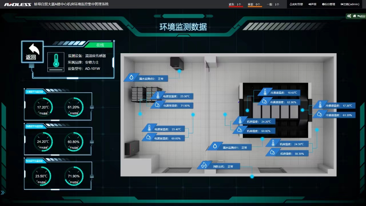 近期安徽省蚌埠自貿(mào)大廈A座、B座機(jī)房采購(gòu)并各安裝了一套安德力士品牌雙排微模塊機(jī)房,機(jī)房設(shè)備含有該品牌設(shè)備:UPS主機(jī)、蓄電池、服務(wù)器機(jī)柜、行級(jí)及基站精密空調(diào)、動(dòng)力環(huán)境監(jiān)控系統(tǒng),現(xiàn)已完成安裝調(diào)試。