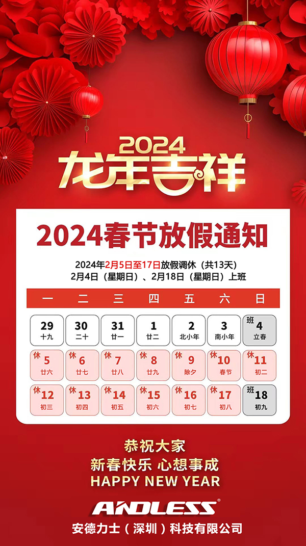 新春佳節(jié)即將到來,我公司依據(jù)法定節(jié)假日相關(guān)規(guī)定,結(jié)合公司實際情況,現(xiàn)將2024年春節(jié)放假安排如下: