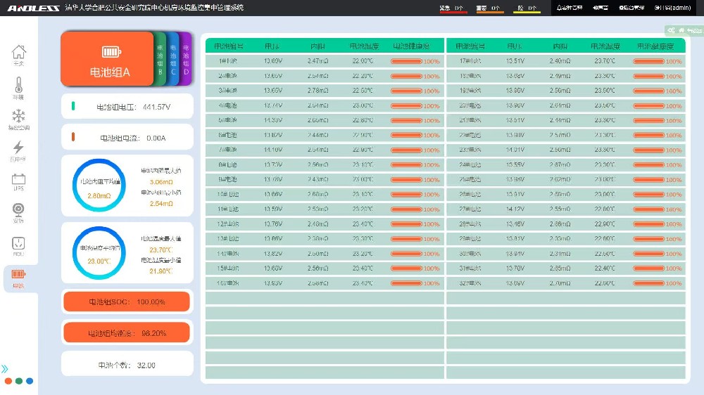 產(chǎn)品概述:蓄電池是UPS系統(tǒng)的核心組成部分,它能夠在電力故障或斷電時提供臨時的電力支持,保證數(shù)據(jù)中心的正常運行。通過連續(xù)監(jiān)控電池狀態(tài),包括電壓、電流、溫度和內(nèi)阻等參數(shù),UPS能夠及時發(fā)現(xiàn)電池健康狀況的變化,預(yù)測潛在故障,并在必要時提前更換或維護,從而避免突發(fā)性故障導(dǎo)致的服務(wù)中斷。這種監(jiān)測有助于延長電池壽命,降低維護成本,同時保證了電力供應(yīng)的穩(wěn)定性。蓄電池網(wǎng)絡(luò)在線監(jiān)測系統(tǒng)是我公司利用最新的單體蓄電池參數(shù)傳感器技術(shù),針對軍隊、通訊、電力、金融等領(lǐng)域蓄電池的使用現(xiàn)狀,開發(fā)的一套全新蓄電池網(wǎng)絡(luò)在線管理和監(jiān)測系統(tǒng)。該系統(tǒng)完美的結(jié)合了最新的在線蓄電池內(nèi)陰測量技術(shù)和計算機網(wǎng)絡(luò)實時通訊技術(shù),成功的解決了蓄電池的遠(yuǎn)程監(jiān)控和狀態(tài)檢修的問題,使得蓄電池的日常維護工作均在網(wǎng)絡(luò)監(jiān)控終端完成。性能特點:系統(tǒng)可監(jiān)測單體電池電壓、單體電池負(fù)極柱溫度、單體電池歐姆內(nèi)阻系統(tǒng)可監(jiān)測電池組電壓、電池組充電/放電電流可對單體電池浮充電壓失常報警、單體電池負(fù)極柱溫度異常報警、單體電池過放報警、單體電池內(nèi)阻異常報警可對電池組浮充電壓高/低報警、電池組充電/放電電流過大報警、電池組過放電報警