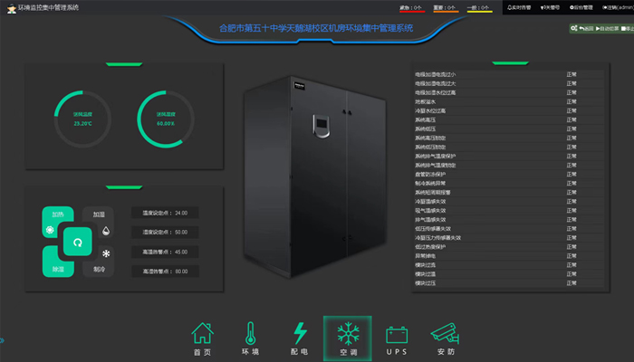 2、異常警報:溫度和濕度異常、漏水、停電等情況。機房運行過程中,系統(tǒng)會自動報警并及時通知管理人員,避免更大的損失。