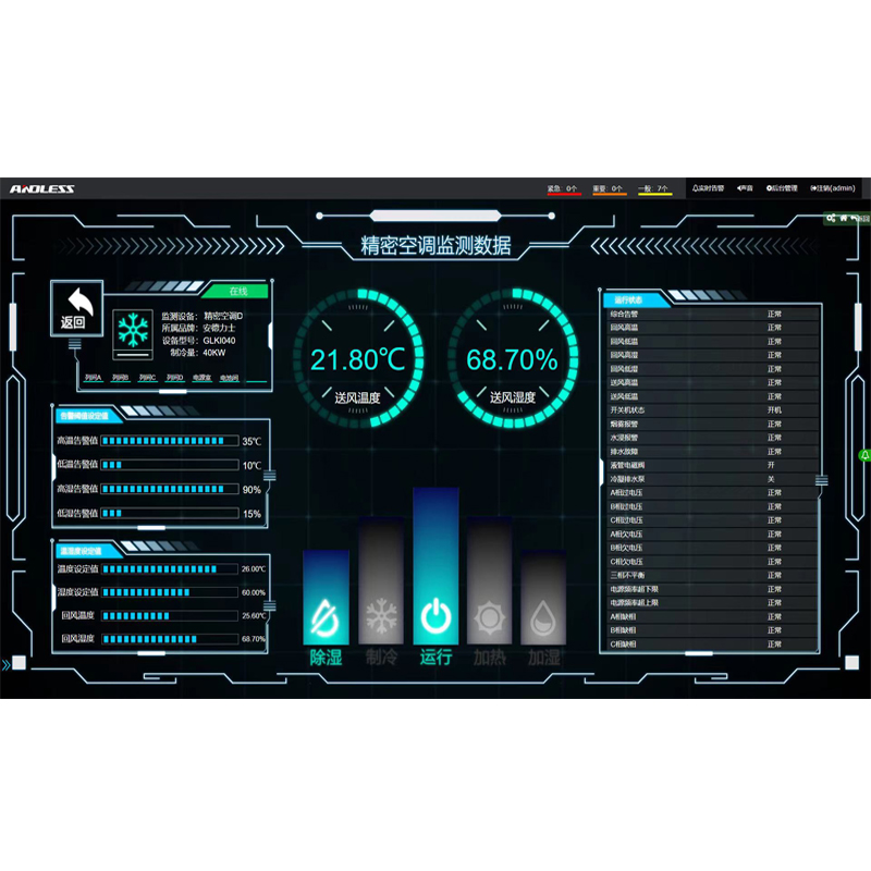 安德力士機(jī)房動(dòng)力環(huán)境集中監(jiān)控管理系統(tǒng),系統(tǒng)人機(jī)界面設(shè)計(jì)友好,塊化設(shè)計(jì),安裝使用簡單,提供北向接口,支持對(duì)接其他系統(tǒng)軟件平臺(tái)。以形象直觀的圖形界面方式實(shí)時(shí)顯示所轄范圍內(nèi)各對(duì)象的工作狀態(tài)和運(yùn)行參數(shù);子系統(tǒng)具備兼容性,支持眾多廠家的智能設(shè)備;具備擴(kuò)展性,提供二次開發(fā)接口,方便第三方軟件系統(tǒng)集成。具有報(bào)表管理功能,可以通過EXCEL表格對(duì)溫濕度記錄以及各種報(bào)警數(shù)據(jù)進(jìn)行統(tǒng)計(jì)。