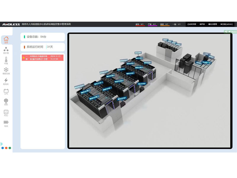 概述:安德力士機(jī)房動(dòng)力環(huán)境集中監(jiān)控管理系統(tǒng),系統(tǒng)人機(jī)界面設(shè)計(jì)友好,塊化設(shè)計(jì),安裝使用簡(jiǎn)單,提供北向接口,支持對(duì)接其他系統(tǒng)軟件平臺(tái)。以形象直觀的圖形界面方式實(shí)時(shí)顯示所轄范圍內(nèi)各對(duì)象的工作狀態(tài)和運(yùn)行參數(shù);子系統(tǒng)具備兼容性,支持眾多廠家的智能設(shè)備;具備擴(kuò)展性,提供二次開(kāi)發(fā)接口,方便第三方軟件系統(tǒng)集成。具有報(bào)表管理功能,可以通過(guò)EXCEL表格對(duì)溫濕度記錄以及各種報(bào)警數(shù)據(jù)進(jìn)行統(tǒng)計(jì)。應(yīng)用范圍:適用于金融、政 府、電信行業(yè)、企業(yè)等大型、中小型數(shù)據(jù)中心。性能特點(diǎn):通過(guò)遠(yuǎn)程傳輸,對(duì)數(shù)據(jù)中心機(jī)房等相關(guān)站點(diǎn)的UPS、蓄電池、高低壓配電、油機(jī)、精密空調(diào)等多種設(shè)備以及溫度、濕度、火警、盜警等環(huán)境參量以及現(xiàn)場(chǎng)圖像集中進(jìn)行實(shí)時(shí)檢測(cè),能夠及時(shí)判斷故障并產(chǎn)生告警,對(duì)遠(yuǎn)端設(shè)備進(jìn)行遙控和調(diào)節(jié),從而實(shí)現(xiàn)機(jī)房服務(wù)器,網(wǎng)絡(luò)設(shè)備、通信設(shè)備提供穩(wěn)定、安全的運(yùn)行環(huán)境。采用這種現(xiàn)代化的監(jiān)控系統(tǒng),其根本目的是為了提高設(shè)備的維護(hù)和管理質(zhì)量,降低設(shè)備維護(hù)成本,提高整體工作效率,從而建立起一套高可靠性、高效率的維護(hù)體制。本監(jiān)控系統(tǒng)可采用分布式聯(lián)網(wǎng)、集中管控的組網(wǎng)架構(gòu),監(jiān)測(cè)點(diǎn)的數(shù)據(jù)通過(guò)底層通訊總線匯聚到TCP/IP網(wǎng)絡(luò),中心機(jī)房部署的一臺(tái)管理服務(wù)器和綜合管理軟件平臺(tái),對(duì)所有網(wǎng)絡(luò)中的監(jiān)控設(shè)備和數(shù)據(jù)進(jìn)行統(tǒng)一的監(jiān)控管理。具有遠(yuǎn)程自測(cè)、關(guān)機(jī)及重啟UPS功能,能夠定時(shí)任務(wù)進(jìn)行此類操作,并具有相關(guān)的記錄報(bào)表。能夠按照實(shí)際情況進(jìn)行設(shè)定使用,可以設(shè)置報(bào)警的條件,對(duì)每種監(jiān)控量的報(bào)警設(shè)置可按報(bào)警類別的不同,進(jìn)行不同的設(shè)置,也可根據(jù)需要對(duì)相關(guān)告警量的上下限閥值設(shè)置進(jìn)行調(diào)整。微模塊內(nèi)設(shè)備具備供電全鏈路顯示功能,可顯示從微模塊的總輸入到IT機(jī)柜的PDU,整個(gè)配電拓?fù)湔故鹃_(kāi)關(guān)狀態(tài)、能量流圖、設(shè)備故障狀態(tài)、支路對(duì)應(yīng)關(guān)系、關(guān)鍵信號(hào)參數(shù)(電壓、電流、溫度等)。軟件通過(guò)《系統(tǒng)與軟件工程 系統(tǒng)與軟件質(zhì)量要求和評(píng)價(jià)》GB/T 25000.51 2016中測(cè)試要求,保障管理平臺(tái)軟件質(zhì)量及安全性。異常數(shù)據(jù)分析和報(bào)警:能夠自動(dòng)對(duì)異常數(shù)據(jù)進(jìn)行分析和確 認(rèn),并發(fā)送通知至系統(tǒng)管理員,具備界面、短信、電話、郵件、 聲光告警。數(shù)據(jù)記錄與追溯:能夠根據(jù)時(shí)間段、設(shè)備等條件進(jìn)行信息 數(shù)據(jù)查詢,實(shí)現(xiàn)數(shù)據(jù)的可記錄、可追溯功能手機(jī)APP及微信報(bào)警系統(tǒng)◆手機(jī)APP移動(dòng)客戶端報(bào)警系統(tǒng):為便于實(shí)現(xiàn)機(jī)房的無(wú)人值守和遠(yuǎn)程管理,滿足客戶對(duì)移動(dòng)終端管理的需求,安德力士開(kāi)發(fā)了移動(dòng)APP監(jiān)控系統(tǒng),實(shí)現(xiàn)機(jī)房所有監(jiān)控?cái)?shù)據(jù)的實(shí)時(shí)顯示和控制。監(jiān)控界面如下所示。微信監(jiān)控報(bào)警推送:系統(tǒng)監(jiān)測(cè)平臺(tái)具備微信端應(yīng)用,通過(guò)關(guān)注公眾號(hào)的方式方式推送信息,非以綁定郵箱方式推送當(dāng)報(bào)警事件發(fā)生時(shí),系統(tǒng)將通過(guò)微信將報(bào)警信息推送給相關(guān)管理人員。 配電監(jiān)測(cè)功能:通過(guò)智能電量?jī)x485接口能夠監(jiān)測(cè)低壓配電柜的配電參數(shù)及狀態(tài):包括系統(tǒng)頻率 F(Hz)、三相相電壓、線電壓、電流值、有功功率、 無(wú)功功率、功率因素等參數(shù)。溫濕度監(jiān)測(cè)功能:測(cè)量溫度范圍:-20℃-70℃ 濕度:0-100%rh測(cè)量精度溫度: ±0.5℃ , 濕度: ±3%RH具有 RS485 接口,LCD 顯示監(jiān)控系統(tǒng)通過(guò)采集溫濕度傳感器所檢測(cè)的溫度和濕度信息,可實(shí)時(shí)地監(jiān)測(cè)現(xiàn)場(chǎng)溫濕度狀況漏水監(jiān)測(cè)功能:含有漏水感應(yīng)繩,通過(guò)報(bào)警控制器將漏水報(bào)警信號(hào)傳至監(jiān)控主機(jī)。