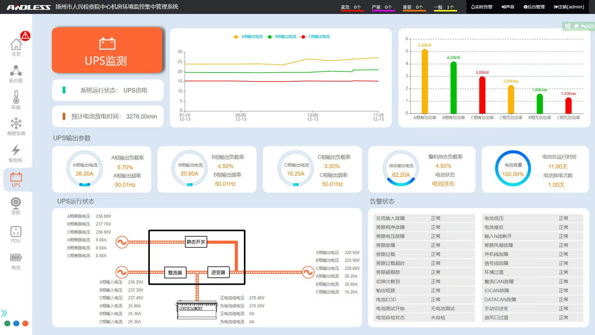 具有遠(yuǎn)程自測、關(guān)機(jī)及重啟UPS功能,能夠定時(shí)任務(wù)進(jìn)行此類操作,并具有相關(guān)的記錄報(bào)表。