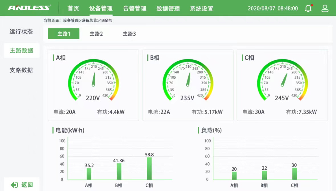 智能安全監(jiān)測:配電支路智能檢測,供電鏈路全顯示。開關接線端了溫度監(jiān)測,主動監(jiān)控關鍵節(jié)點溫度。